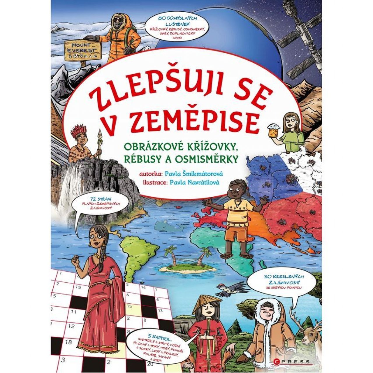 Zajímáte-li se o český i světový zeměpis a chcete se o něm dozvědět více, je tento pracovní sešit určen právě pro vás. Každá z 5 kapitol obsahuje 6 kreslených zeměpisných zajímavostí, které spojuje společné téma – světadíly, vodní plochy, hory, lesy a pouště. Abyste to však neměli jednoduché, k odhalení zeměpisného tajemství je třeba správně rozlousknout 2 až 3 rafinované rébusy.